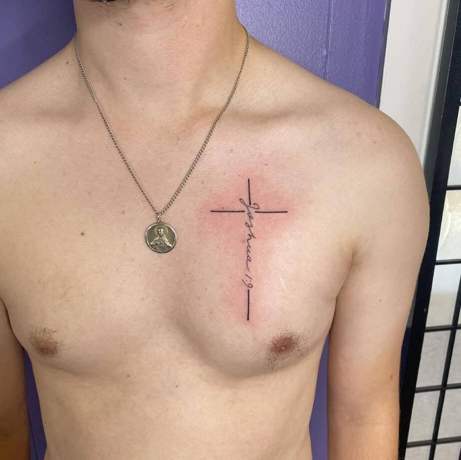 A tiny cross near the heart with Joshua 1:9 feels like a shield you don’t have to carry — it lives on you. It’s subtle bravery, the sort that steadies your breath when life tries to shake you.