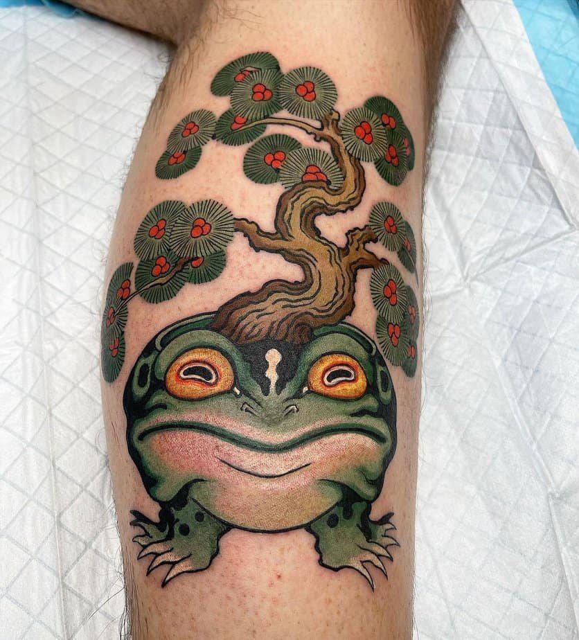 A frog with a bonsai growing from its back — how fun and symbolic is that? Frogs are all about transformation, life stages, and vitality, so this piece reads like an ode to personal change and the journey of growth.