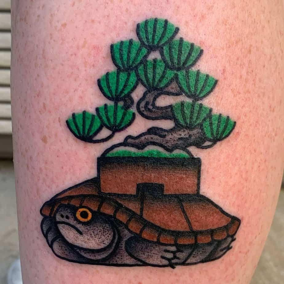 A turtle carrying a bonsai — slow, steady, enduring