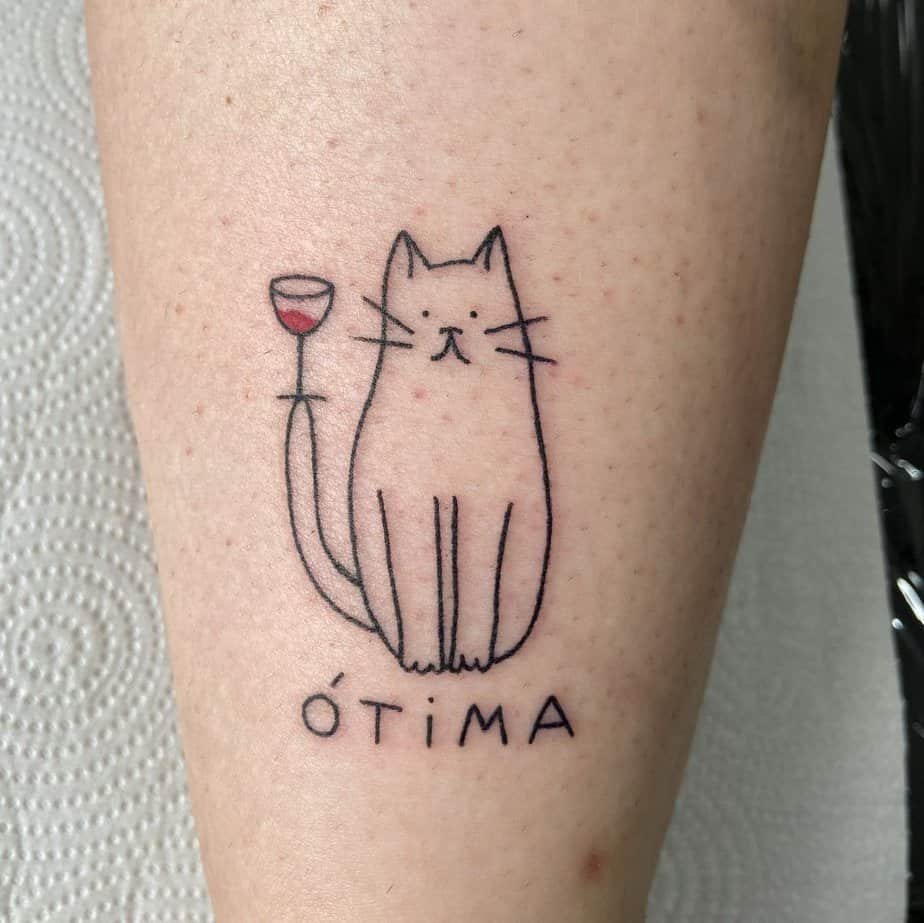 This one made me laugh: a very serious-looking cat with its tail curled up and a glass of red wine perched on the tail tip. It’s witty, a little snobby, and totally charming — cheers to that.