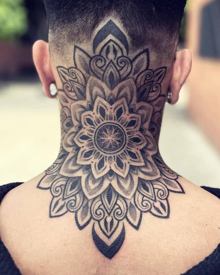 If you’re thinking neck, you might as well commit to something that tells the story you want. A back-of-neck piece with lines, shapes, and symbols in dotwork can read powerful and personal. Go bold if that’s your vibe.