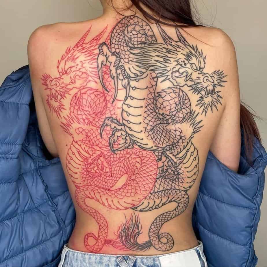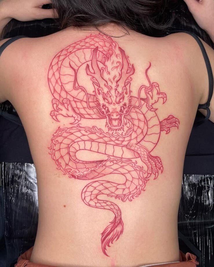 There’s also something romantic about a red dragon — people often read it as love and luck, so placing it on your back lets the artist go wild with details. And if you’re craving something artsy, an abstract dragon that blends into the shape of your back can look like it always belonged there. Big canvas, big emotion.