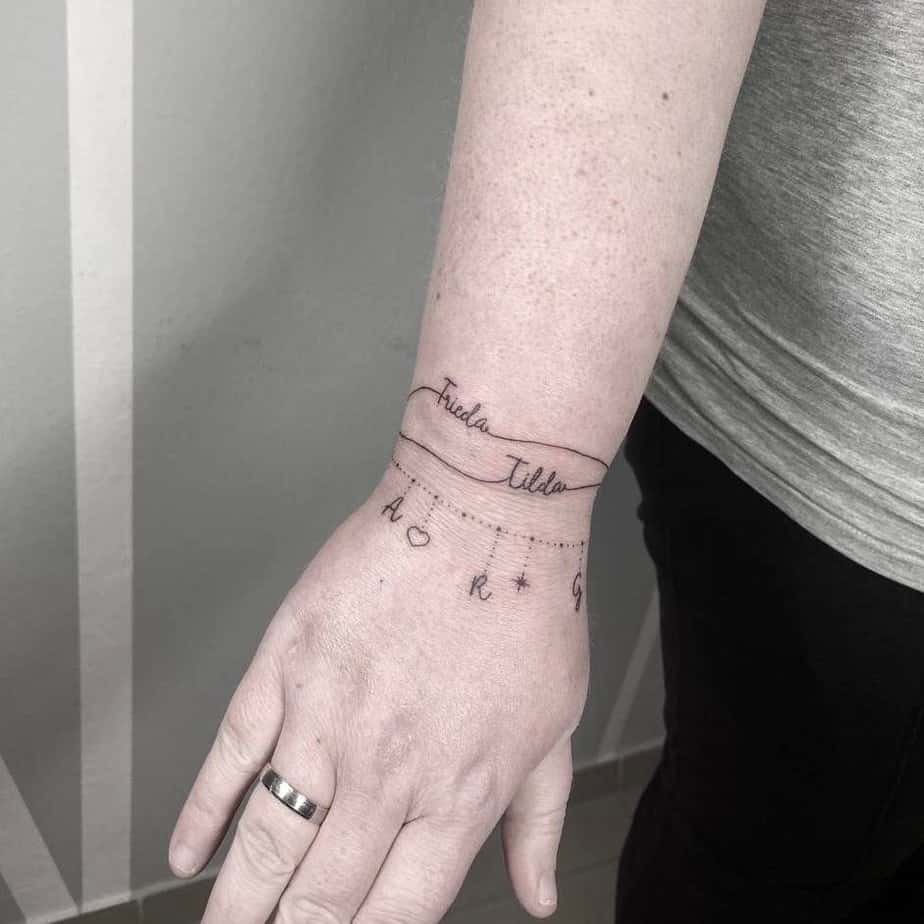 10. A bracelet tattoo with initials — wearable and forever