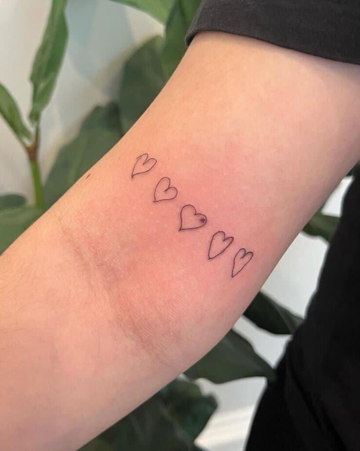 Collect tiny hearts that your family members drew, then ask an artist to fuse them into a single tattoo. That one is full of personality — wobbly lines, different pressures, real handwriting — and it’s the kind of thing you’ll treasure because it’s literally made by them.
