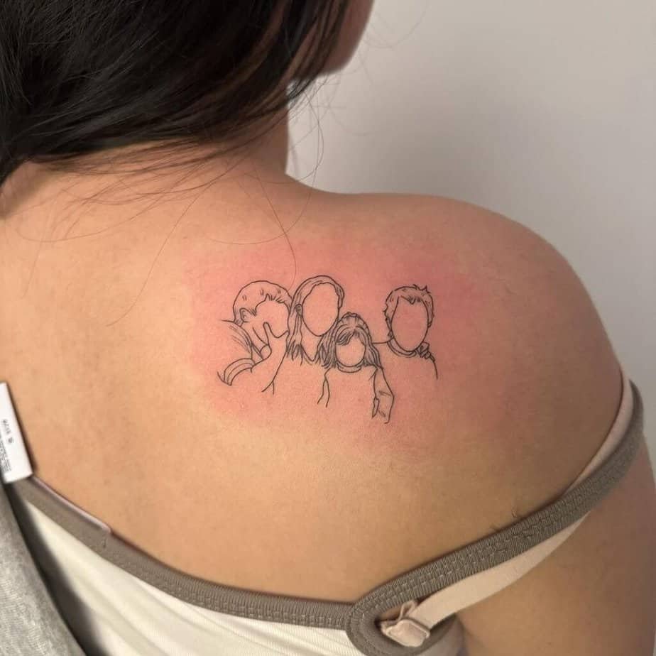 Turning a favorite photo into a single-line family outline is such a sweet move. It keeps the memory but pares everything down to the most important shapes and relationships. Even if you’re a tattoo person who loves color and detail, this one will probably become your quiet favorite.