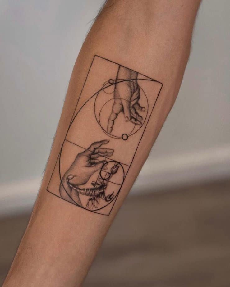 Tossing heavy symbolism like a scorpion for strength or the Creation of Adam for rebirth into the spiral makes the piece feel cinematic. It’s the kind of tattoo that invites questions.