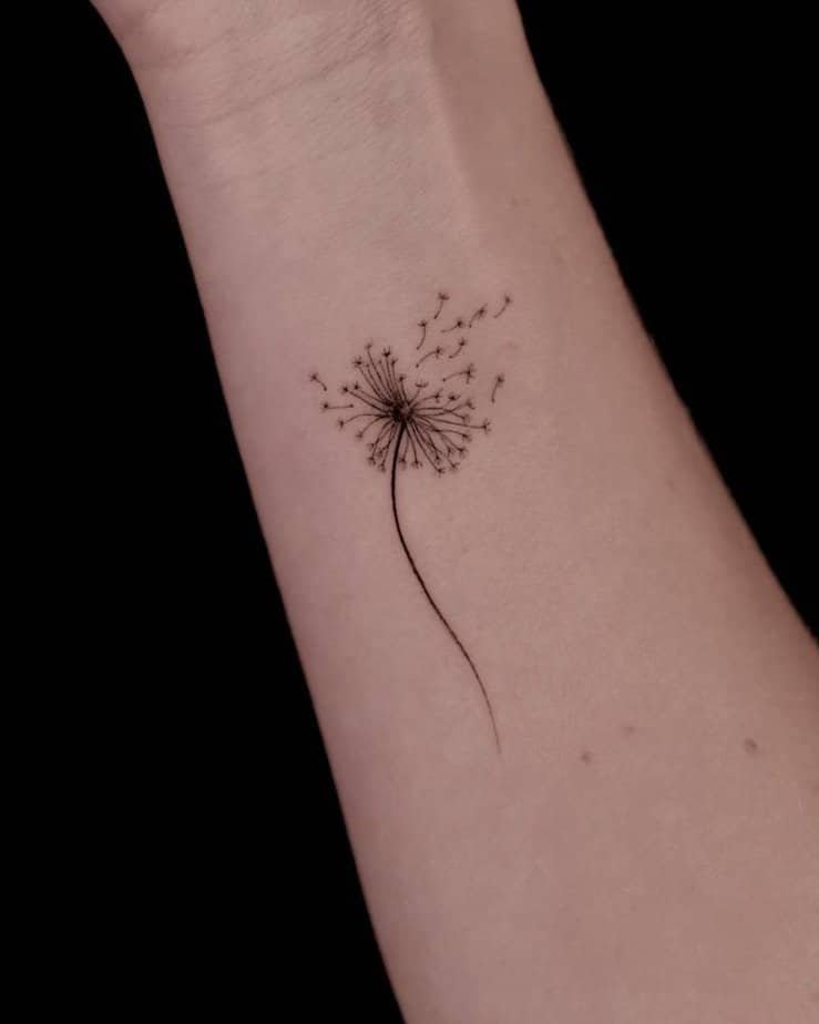 Another dandelion moment, but this one really leans into that dreamer energy: seeds floating away like tiny promises. Dandelions carry hope and dreams, and this airy design is lovely if you live with your head full of gentle wishes.