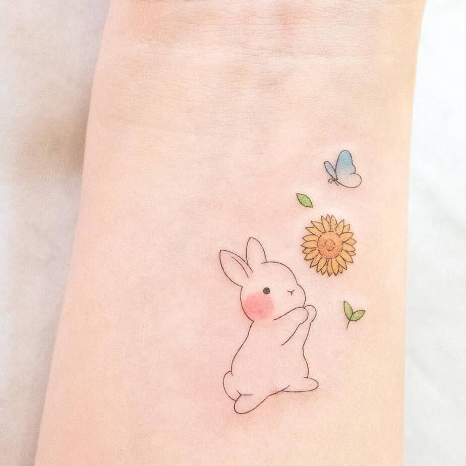A bunny and a sunflower — pure storybook charm