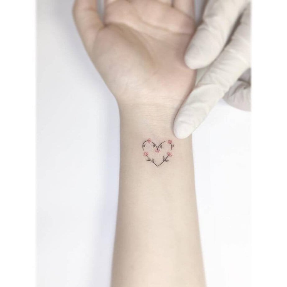 Imagine a gentle vine that climbs the wrist with little pink buds about to bloom — that’s this design. It feels light and organic, like quiet potential. If you want a tattoo that whispers growth and possibility, this one’s a soft yes.