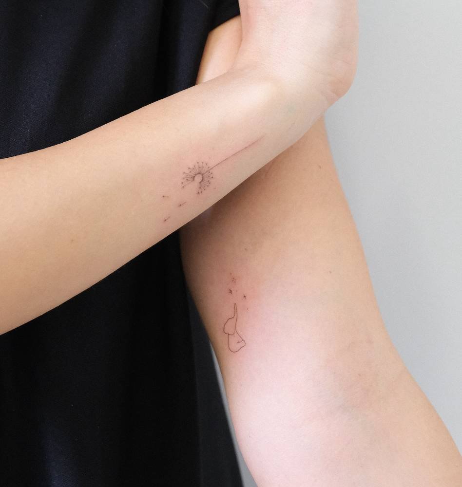 This one freezes that lovely moment when dandelion seeds lift away. Thin linework makes the fluff look weightless, like the wind’s mid-hug. It’s subtle and nostalgic — a small symbol for hope, wishes, or simply enjoying the small, fleeting moments.