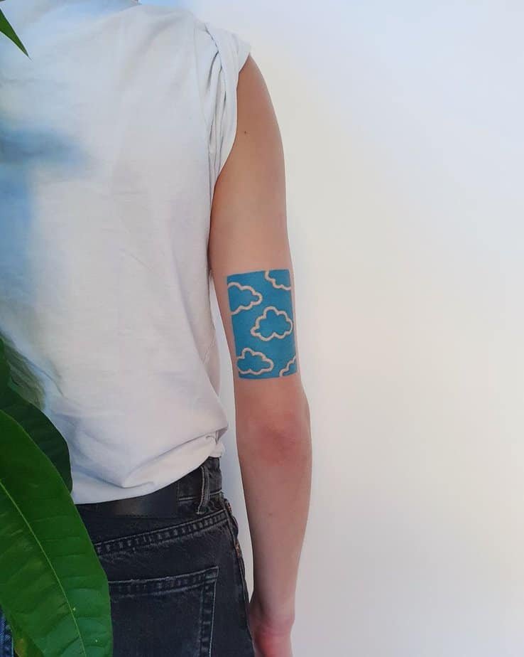 This handpoked sky is simple and meditative — soft tones that mimic that pause you get when you stare up and breathe. The handpoked texture gives it a unique, intimate feel, like something slow-made and personal.