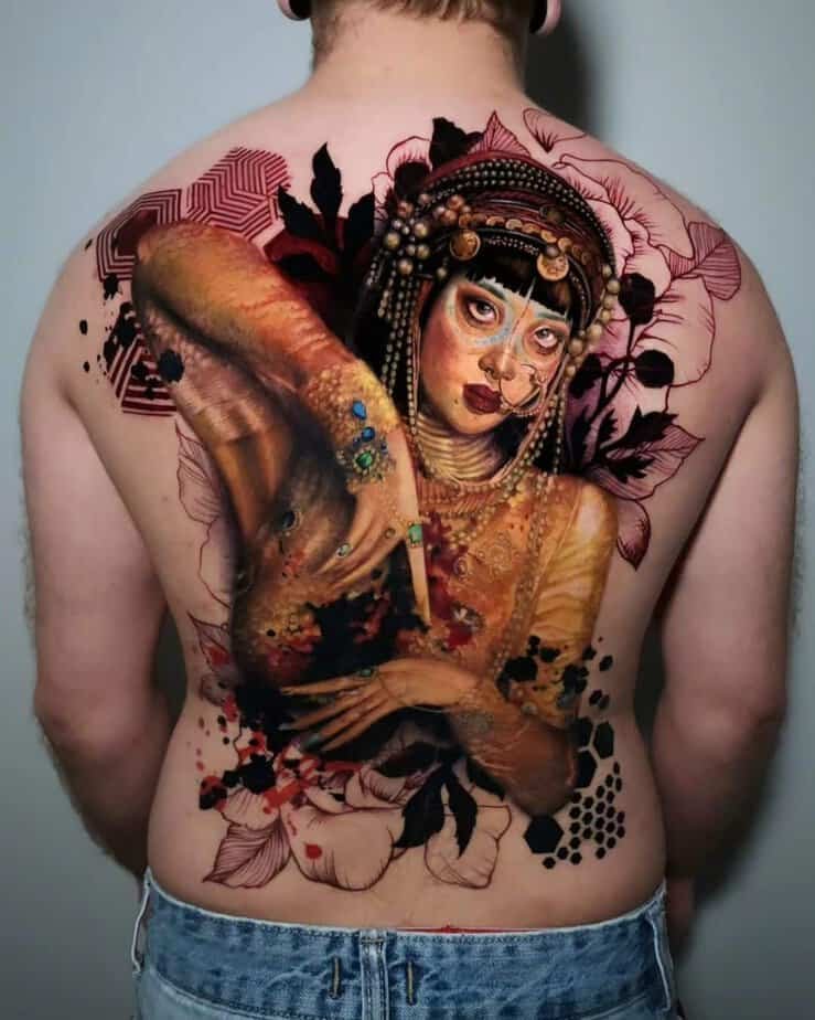 Realistic portraits on the back are intense. A woman wrapped in snakes is edgy and cinematic, but it’ll take time and patience to get right. If you’re up for long sessions and want something that reads like a single-frame film still, this could be magic.