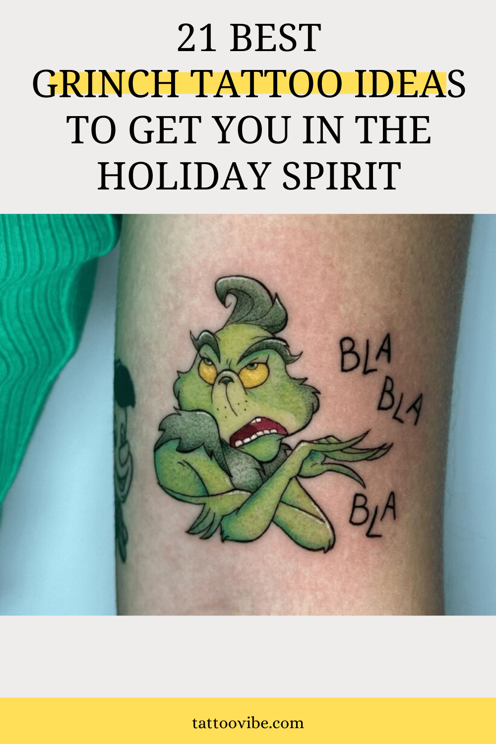 I have a confession: I will never get tired of classic Christmas movies — and if you love tattoos, they’re basically a goldmine for ideas. Lately I’ve been thinking about the Grinch (yes, that grumpy little green guy) and why so many of us secretly relate to him. He’s moody, sure, but he’s not evil — sometimes the holiday season just gets too loud and glossy, and the Grinch calls that out in the best way. If you’ve ever rolled your eyes at over-the-top holiday cheer, a Grinch tattoo might actually be the most honest holiday flex. Whether you want something bold and colorful or quiet and black-and-gray, there’s a way to make it feel uniquely you. Below are a bunch of ideas I’m obsessed with — they made me laugh, think, and want to call my best friend and say, “Look at this tattoo!”