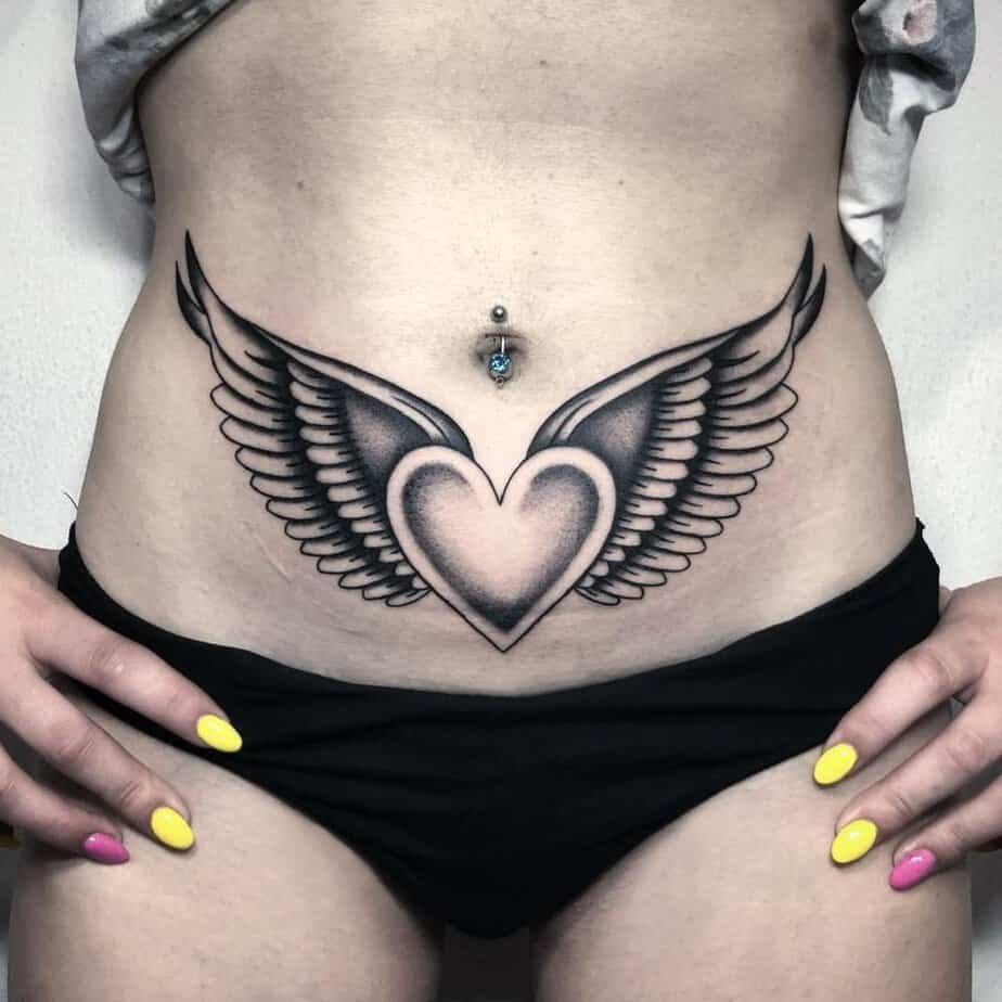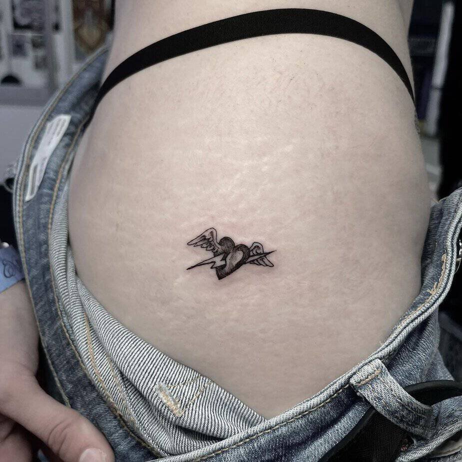 Symmetry is calming, and a heart with wings placed on the lower abdomen reads as both elegant and intentional. It flatters the body’s natural lines and has this quiet confidence to it — like a little secret that gives you an instant boost when you catch your reflection.