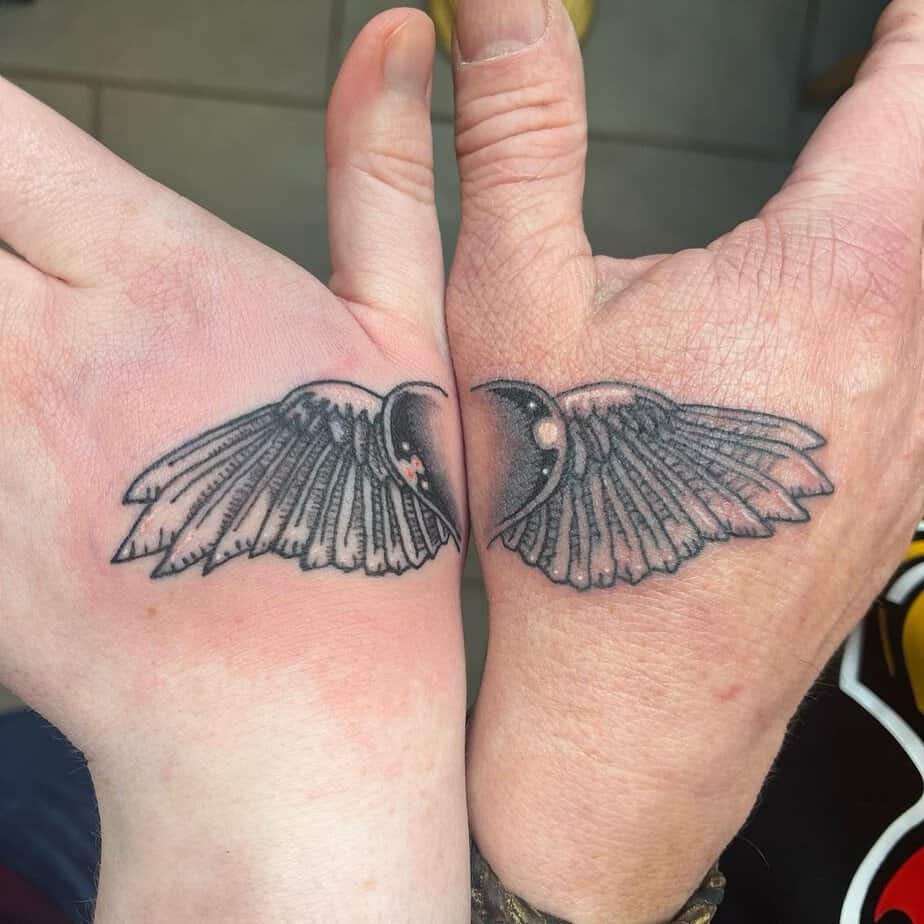 Want to lock in a bond with someone? Matching winged hearts on the hand are adorable and symbolic — like a modern pinky promise you can’t wash away. Whether it’s a friend, partner, or family member, every time you reach for something you’ll get that little reminder of your connection.