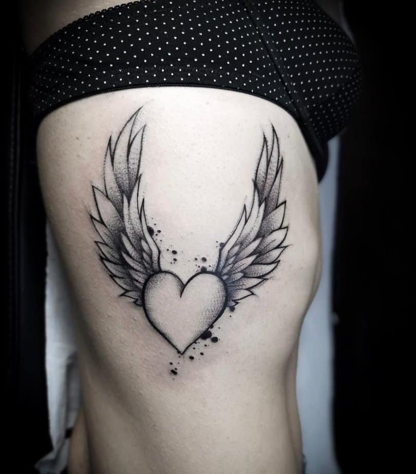Not every tattoo needs to be headline news. A small winged heart tucked on your side is a private symbol that still carries weight. It’s discreet, intimate, and perfect if you like having something meaningful that only you (and a few others) see up close.