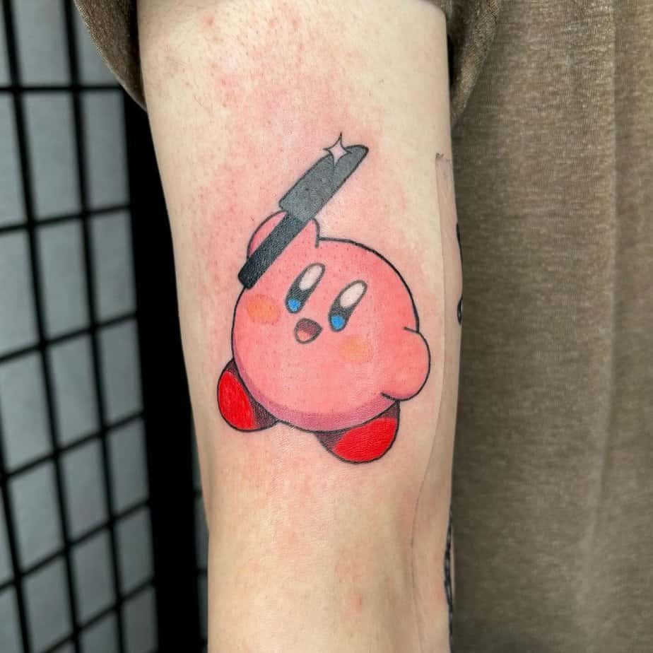 At first glance it’s a funny contrast — tiny Kirby holding a knife — but it’s actually nodding to his Chef ability from the games. I love tattoos that play with expectations like that: cute and cheeky, and a little inside joke for fans.