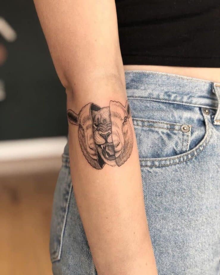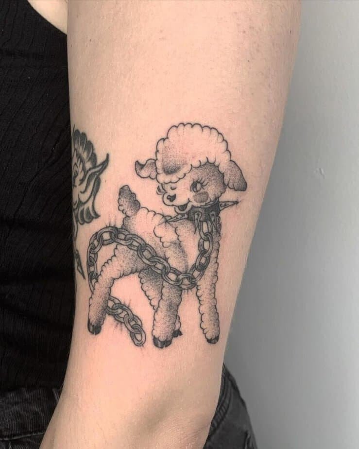 Traditional style isn’t for everyone, but when it’s done right it’s timeless. This one leans into classic tattoo aesthetics — bold lines, clear shapes — and somehow makes the lamb feel both vintage and refreshingly confident.