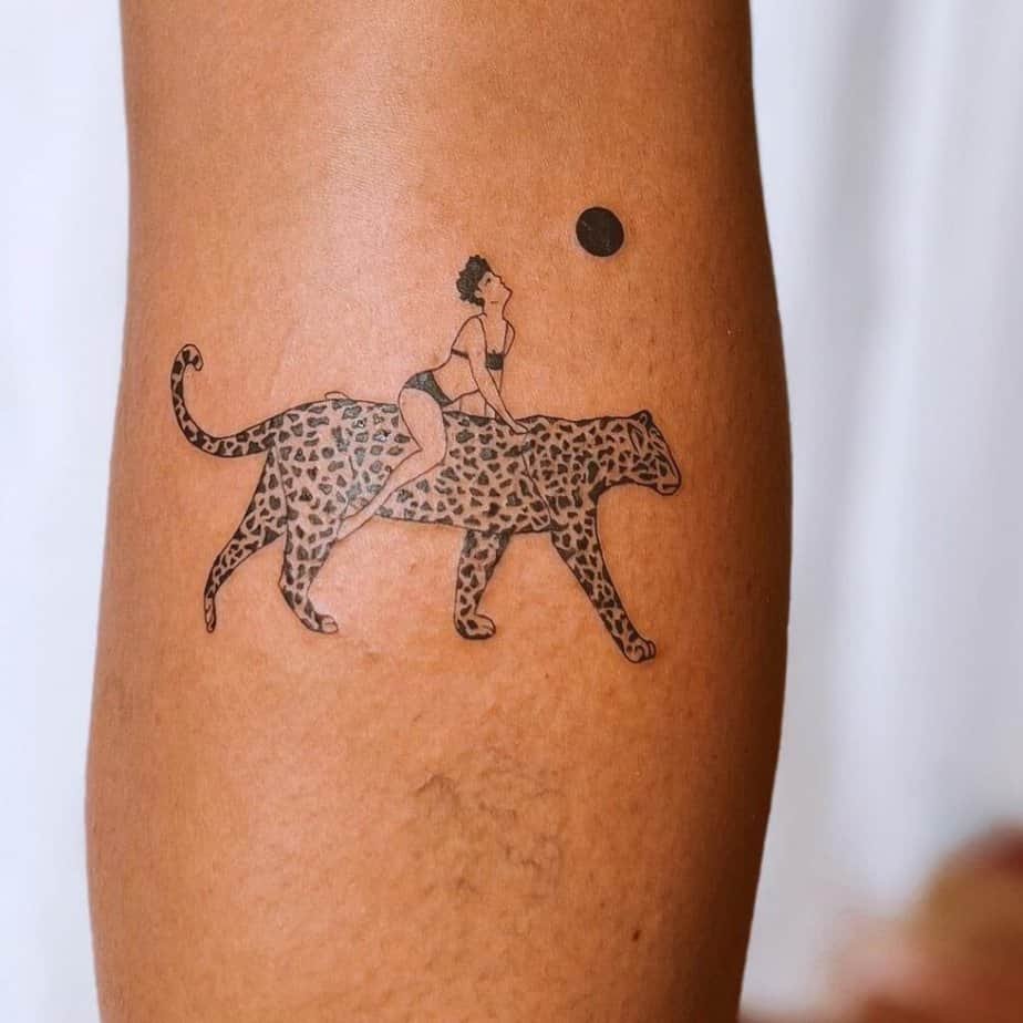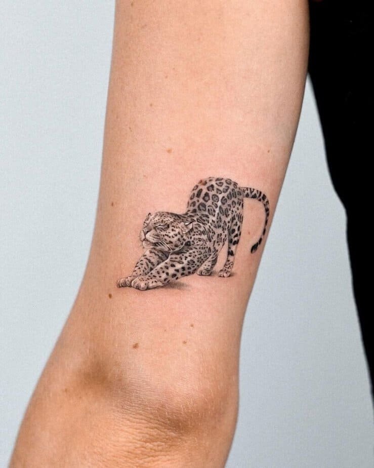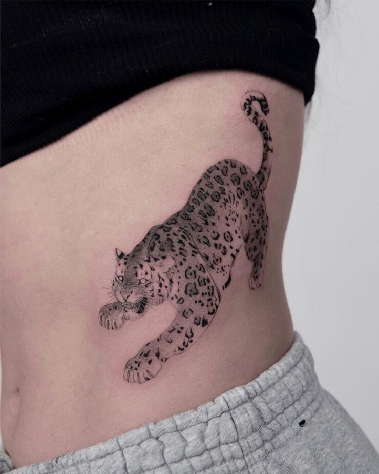 Minimalist and elegant, this crouching leopard leans into suggestion rather than detail. Placed on the rib cage, the fluid lines and subtle touches hint at movement and readiness, using your body’s curves to sell that sense of depth. It’s a great pick if you want a design that whispers strength instead of shouting it.