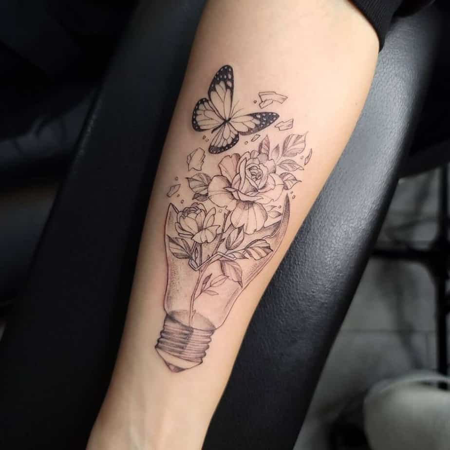 Butterflies are classic symbols of change and growth, and pairing them with a short quote makes the tattoo yours. You can pick a phrase that means something to you and suddenly it’s not just pretty — it’s personal and steadying.