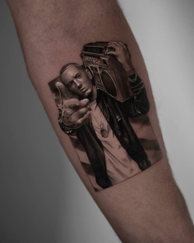 This tiny tribute to Slim Shady is like a time capsule — Eminem crossing the street with an old-school radio, totally early-2000s energy. It’s the kind of portrait that reminds you why music sticks with us: those lines and moments that shaped our playlists (and our attitudes). If you grew up with his tracks, this one’s pure nostalgia and respect.