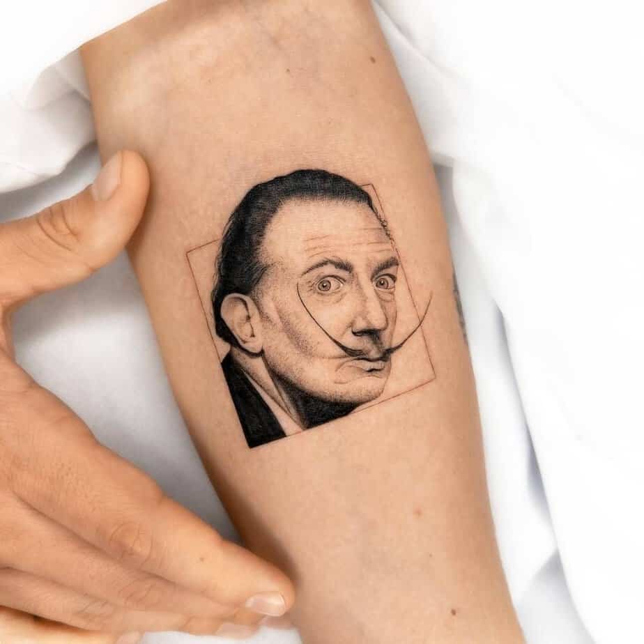 This little Dalí is everything—his famous mustache, that intense gaze — captured so well it almost feels surreal right on the skin. If you love the weird and wonderful of art history, carrying a tiny icon like this is a playful, bold statement.