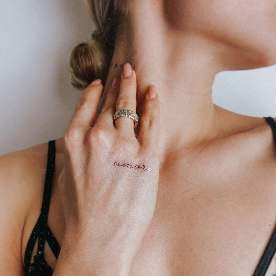 Amor is short, pretty, and universal. On the hand it becomes a tactile reminder to lead with love, whether that’s for yourself or other people.