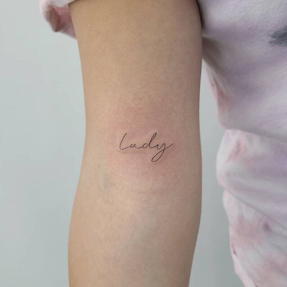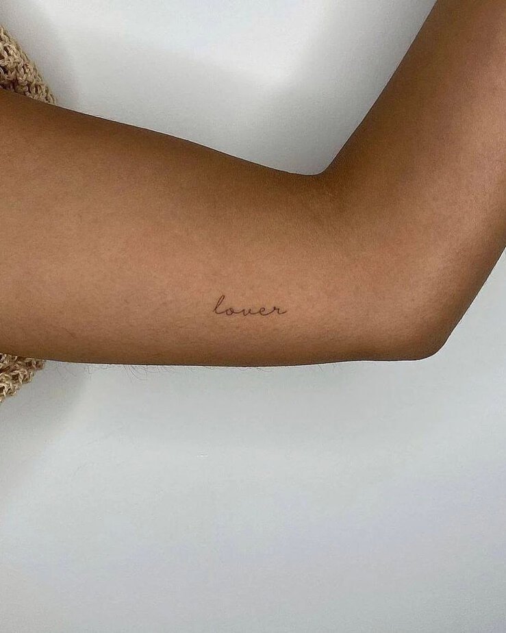 Are you a soft romantic or someone who loves ferociously? Lover can remind you of your capacity for feeling — and on the upper arm, it looks intentional, not needy.