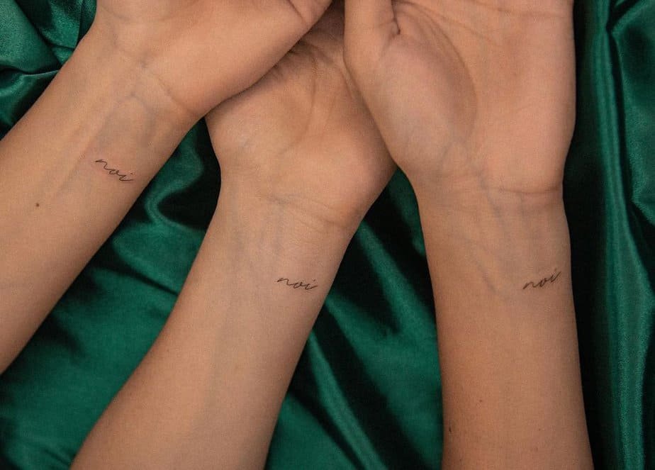 Getting matching one-word tattoos with friends is such a mood. Pick a word that sums up your crew or an inside joke, and you’ve got a permanent little reminder of your bond. Low-key, sentimental, and super cute.
