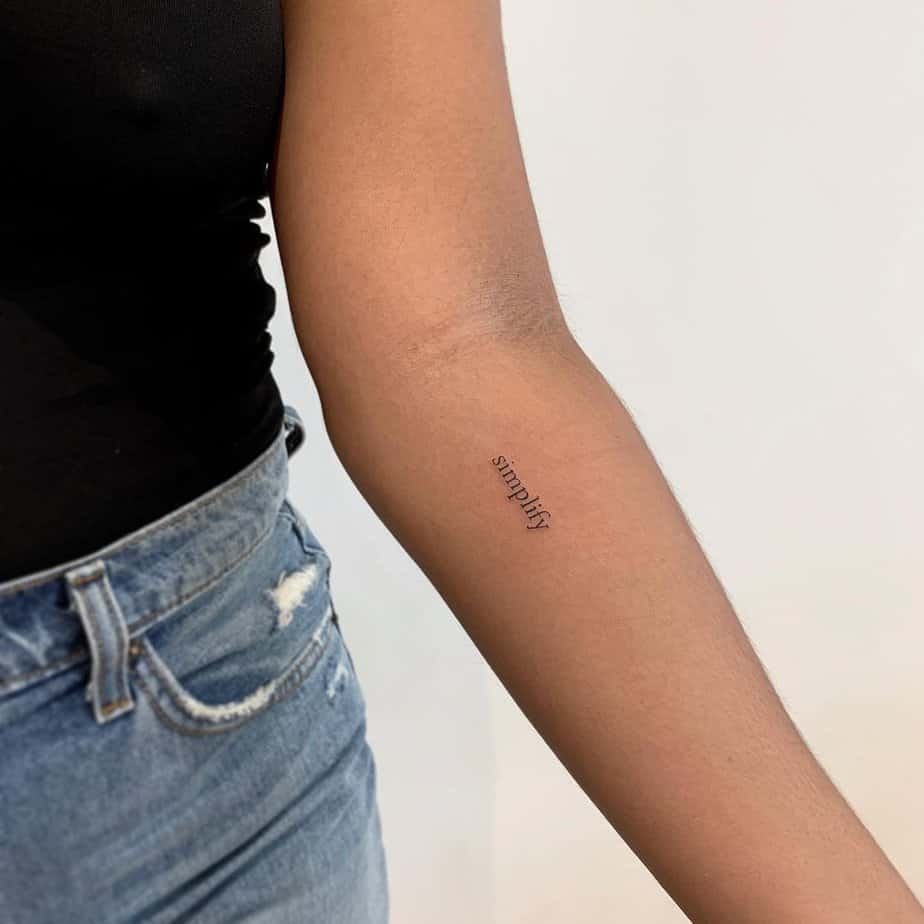 Simplify your closet, your schedule, your brain — whatever needs untangling. Having that word on your forearm is like a tiny life coach who shows up every morning. Also, it’s chic.