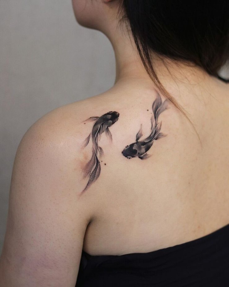 Back tattoos are like secret gardens — mostly hidden, but so worth it when they’re revealed. If you’re into bolder, larger designs (maybe two fish swirling into one another), the back gives your artist room to play and for your story to unfold across skin.
