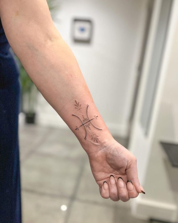 Wrist tattoos are great because they’re almost always on display — which is perfect if you want your sign front and center. A wrist Pisces glyph tells people upfront you’re guided by heart, intuition, and maybe a little mystery.