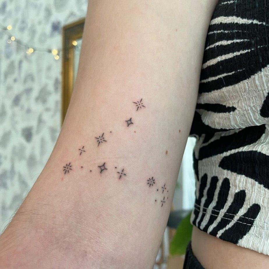 Sparkly constellation on the bicep — classic and straightforward