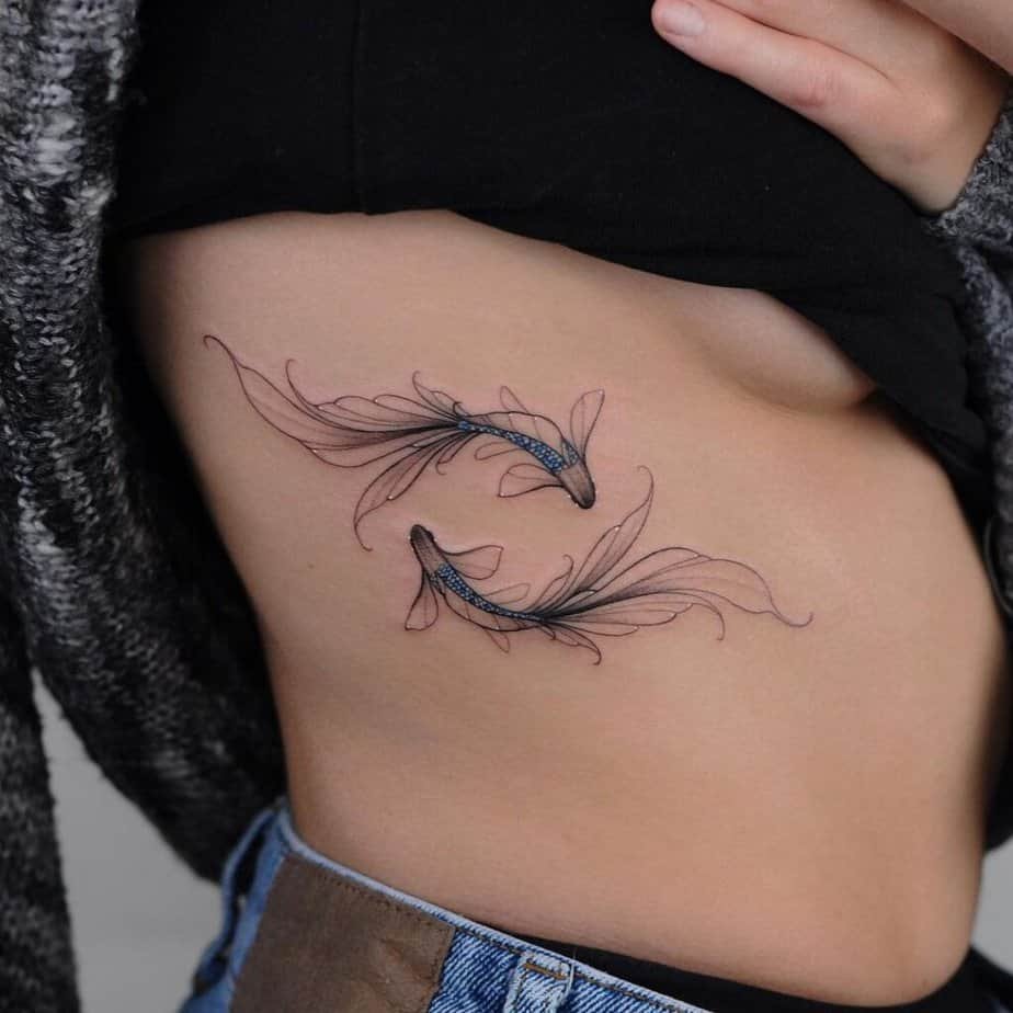 Rib tattoos aren’t tiny comfort-zone choices — they’re intimate and a little daring. A Pisces motif there reads as sensual and secret, which is kind of perfect if you want something meaningful that feels like it’s just for you.