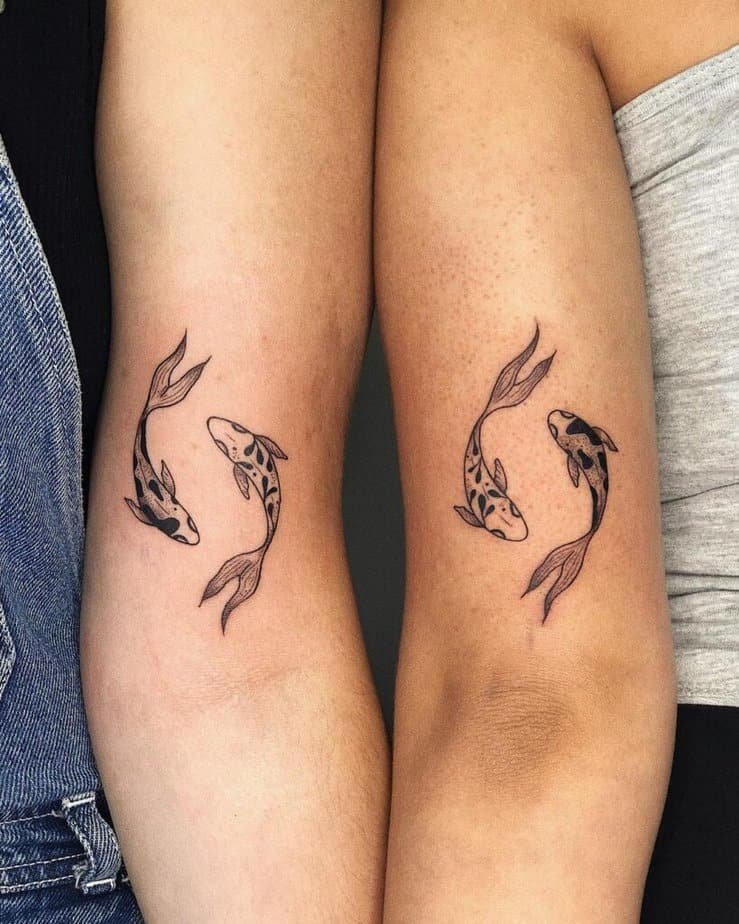 Matching Pisces tattoos — share the sign