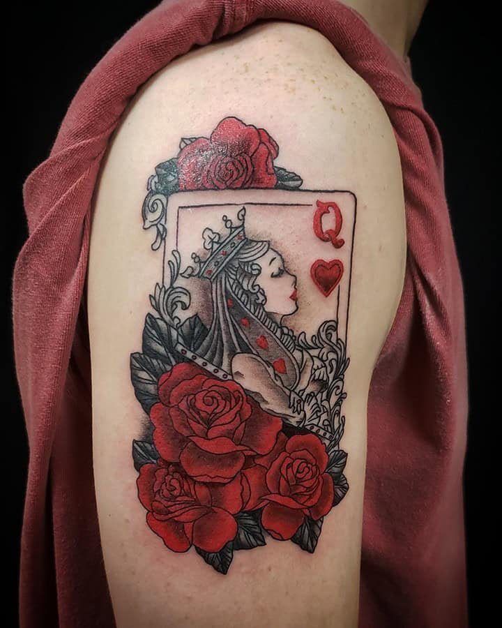 The Queen of Hearts tattoo feels like that friend who shows up in red lipstick and a leather jacket — powerful, a little mischievous, and impossible to ignore. I’ve been falling down a rabbit hole of designs lately, and honestly? There’s something for everyone here: soft and floral, dark and gothic, minimalist, and wildly colorful. Let me show you 20 versions that made me stop scrolling.