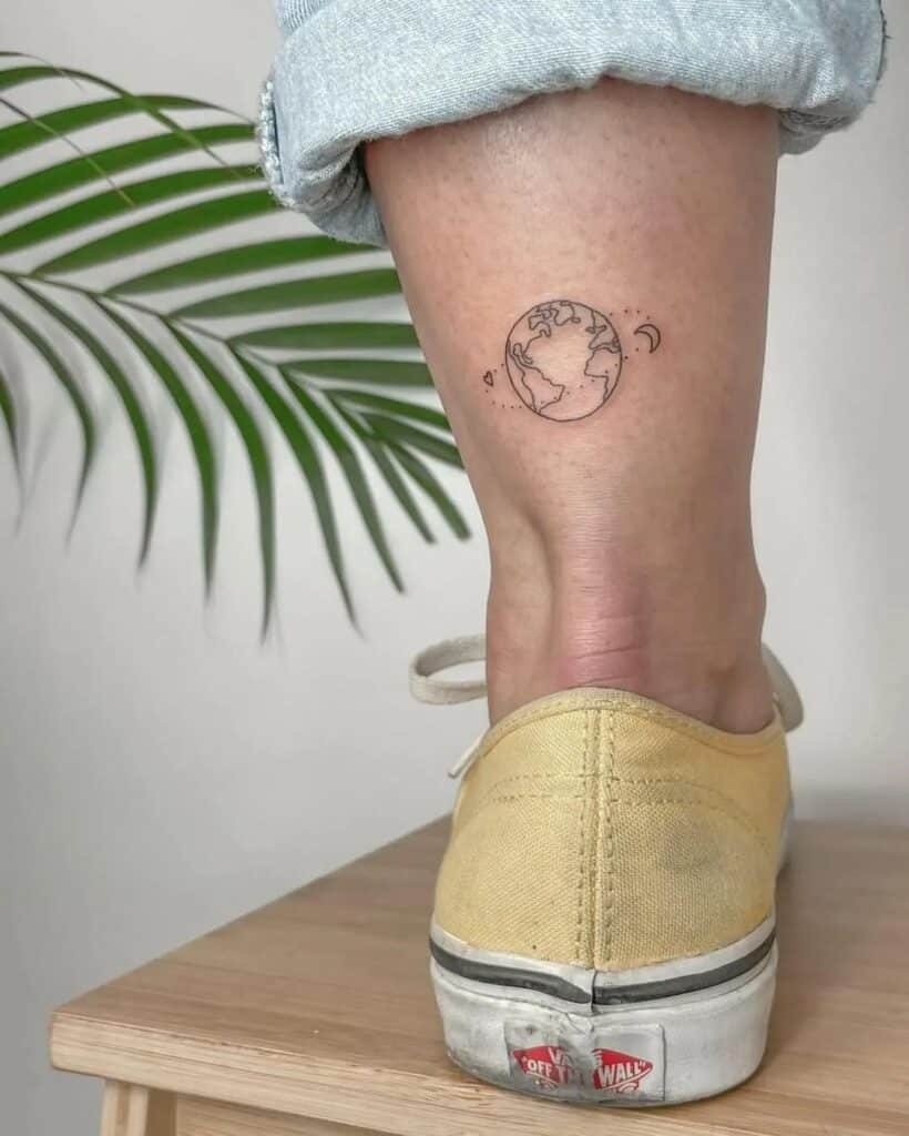 If you’re a traveler or you want to honor the planet, a little world tattoo is playful and meaningful. It’s small, sweet, and says you carry curiosity — or responsibility — with you.
