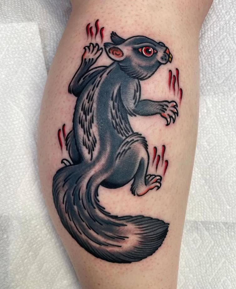 Hot pinks, oranges, purples, and blues — this neon squirrel is loud and proud. It’s playful, bright, and perfect if you want your tattoo to read as pure fun.