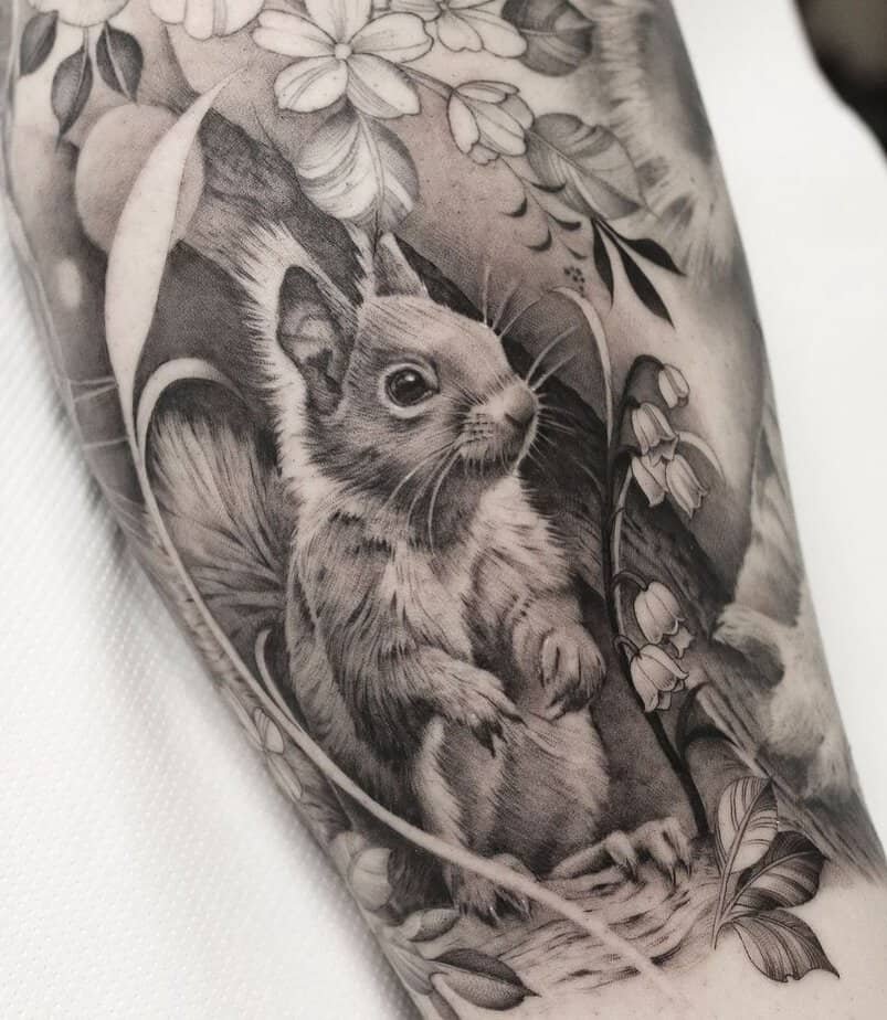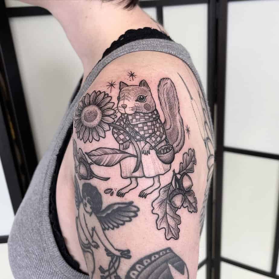 This one dresses a squirrel up as Sherlock Holmes, pipe and classic attire included. It’s quirky, charming, and perfect for anyone who loves a little literary or detective flair in their tattoos.