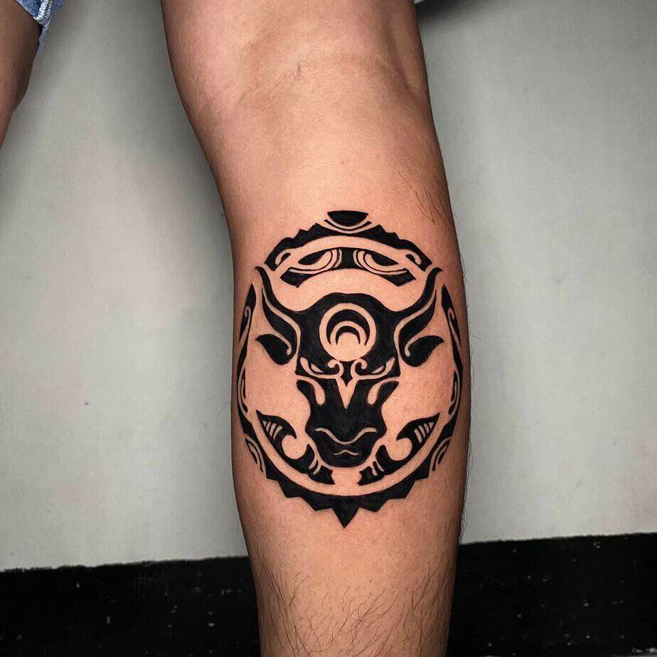 Placing a geometric bull on the chest amps up the symbolism — it sits close to the heart, literally and figuratively. Sharp lines, a star framing the head: it reads protective and empowering, like a personal talisman for strength.
