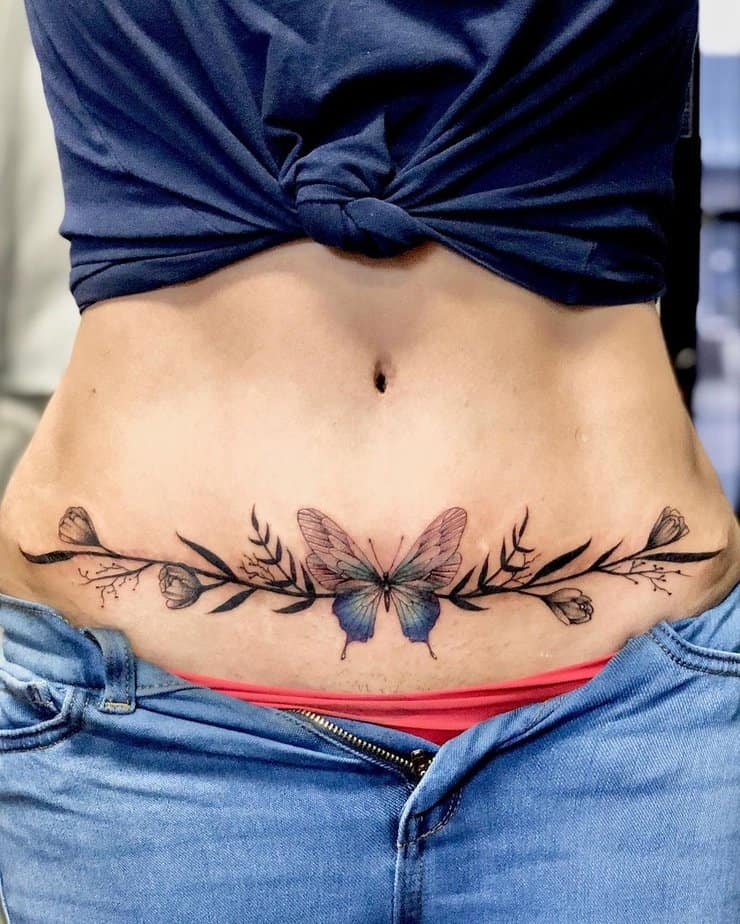 A large butterfly is classic for a reason: it’s about change and rebirth. Placing one over a tummy tuck scar is like putting your new story right where it belongs.