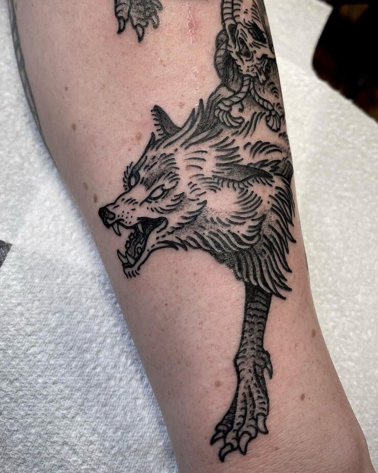A snarling wolf on the hand? That’s commitment. It says "I mean business" and brings a little extra wildness to every handshake.