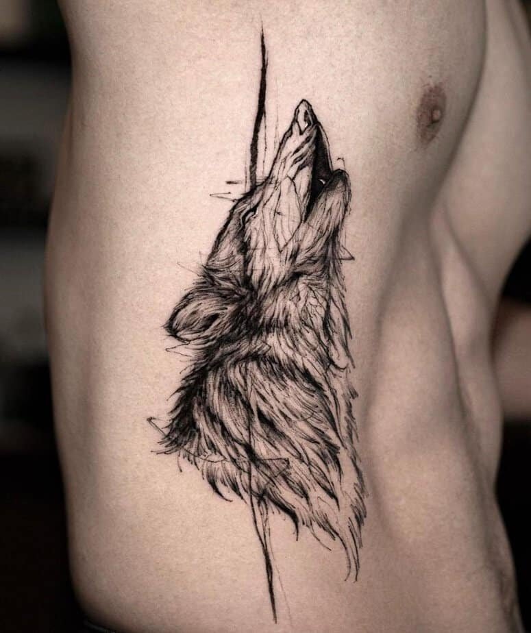 A sketchy wolf howling with abstract lines forming a crescent — subtle, artsy, and a little mystical. Lucky for us, it’s not a full moon — no werewolf transformations today.