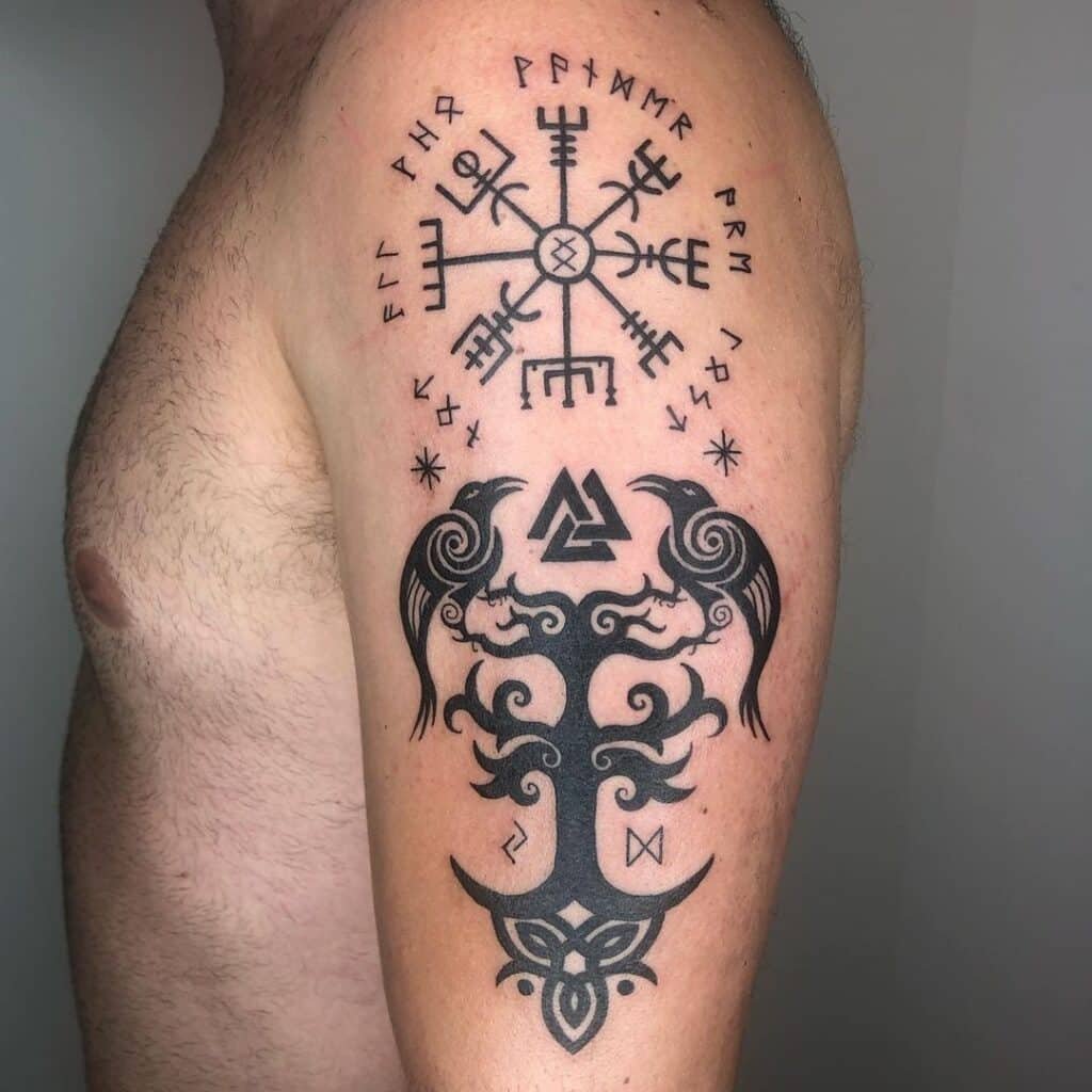 Upper arm is classic for a big Yggdrasil because you’ve got space to let the roots and branches spread. It’s statement-making without being showy.