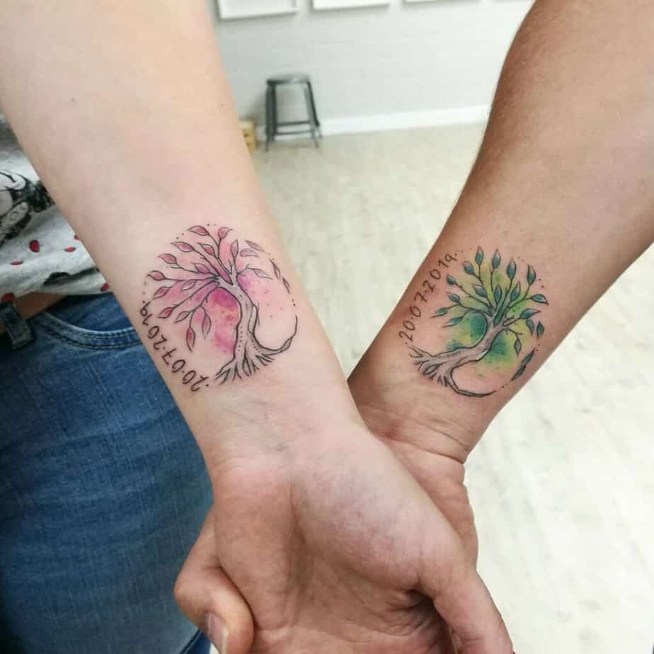 Matching Yggdrasil tattoos — share the roots