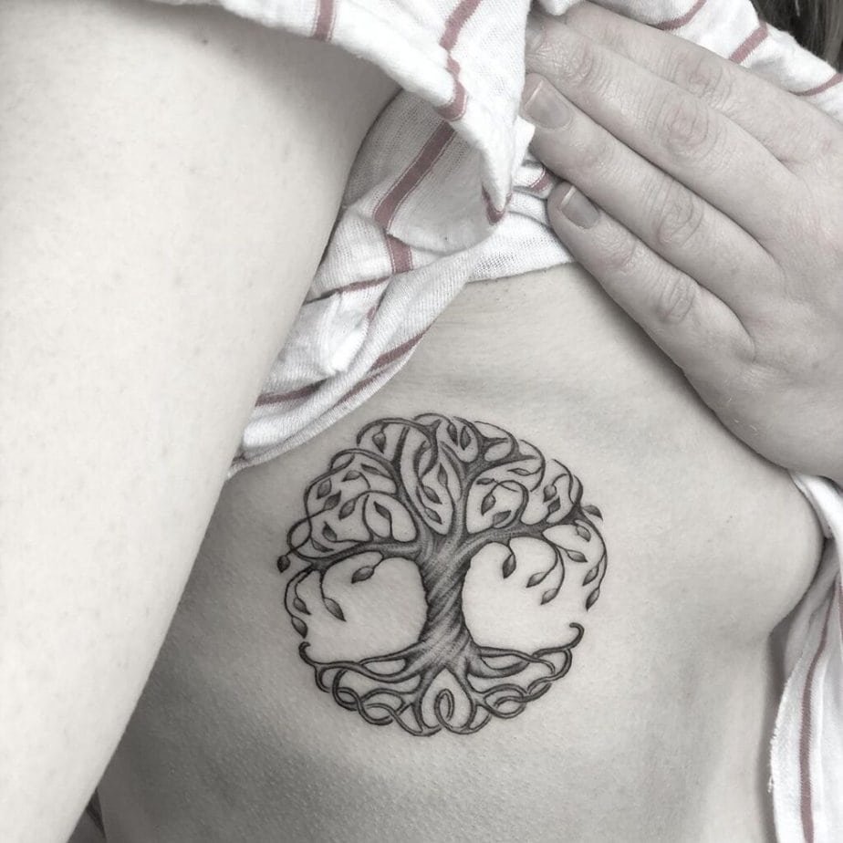 Rib tattoos hurt (no sugarcoating) but they sit close to the body and read as very personal. For a big Yggdrasil design, this placement feels intimate and powerful.