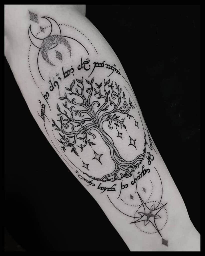 If you’re a LOTR fan, this combo makes so much sense. The White Tree of Gondor symbolizes hope and renewal, and pairing it with Yggdrasil brings together two trees that mean resilience, rebirth, and that quiet kind of power.